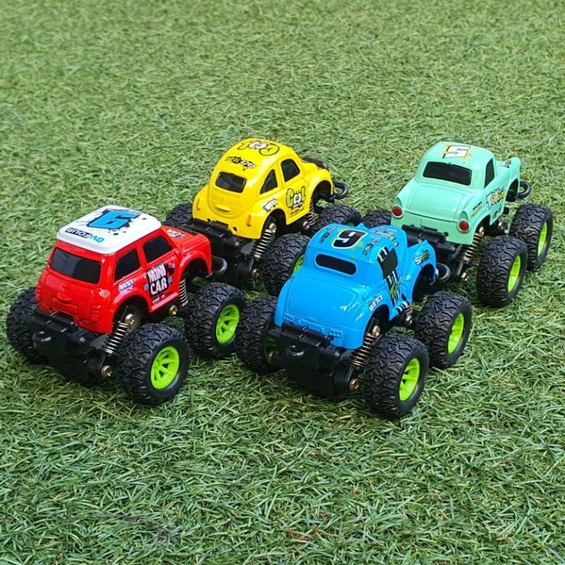 Mainan mobil diecast cross country * Tipe pullback: tekan mobil lalu tarik mundur, lepaskan dan mobil akan meluncur * Disertai dengan mekanisme per, sehingga dapat melewati rintangan2 kecil. * Sekali meluncur bisa hingga 3 meter, lebih jauh dari pullback pada umumnya. * Skala 1: 48 * Terbuat dari plastik dan metal * Ukuran mobil (P x L x T): 9 x 7x 5 cm (Kurang Lebih) * Ukuran kemasan (P x L x T): 12,5 x 8 x 8 cm