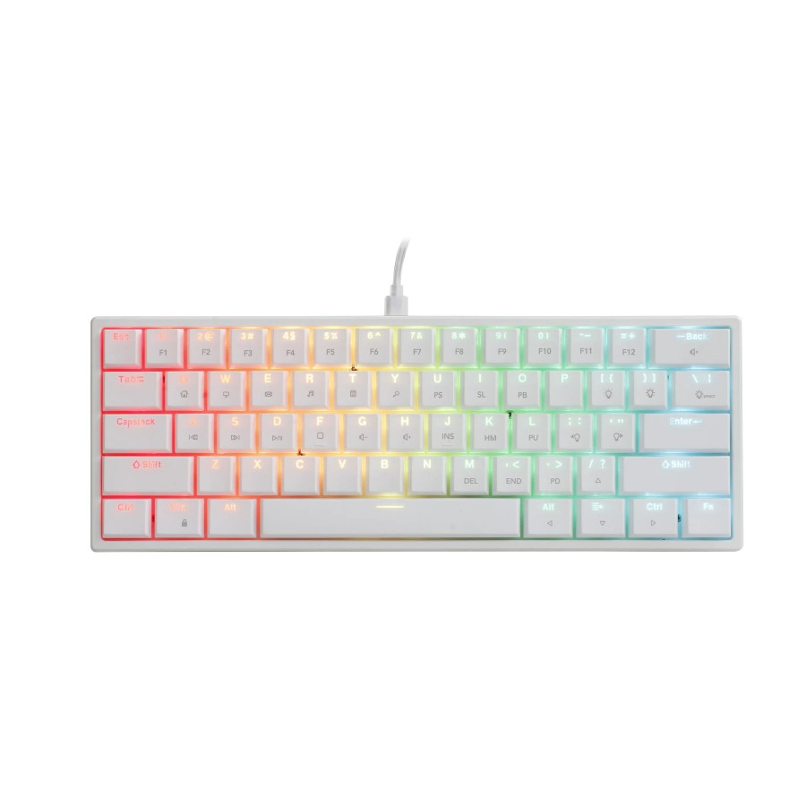 📛 Spesifikasi : ❇️ Type : Mechanical 61Keys Mini Layout ❇️ Color : White / Black ❇️ Material : ABS with Metal Plate ❇️ Weight : 436±gr ❇️ Dimension (L x W x H): 297 x 107 x 27,2mm ❇️ Interface : Detachable Type-C ❇️ Keycaps : Bottom Pudding, Double Injection ❇️ Cable Length : 1.2m Braided Magnet Ring with Copper Plate ❇️ Backlight : Yes, RGB LED Colors with 18 mode ❇️ Software : No ❇️ Polling Rate : 1000Hz ❇️ Switch Name : Outemu GTMX Removable Switch ❇️ Switch Color : Blue, Red & Brown ❇️ Type Feel : Clicky, Linear & Tactile ❇️ Lifespan : 50 million times