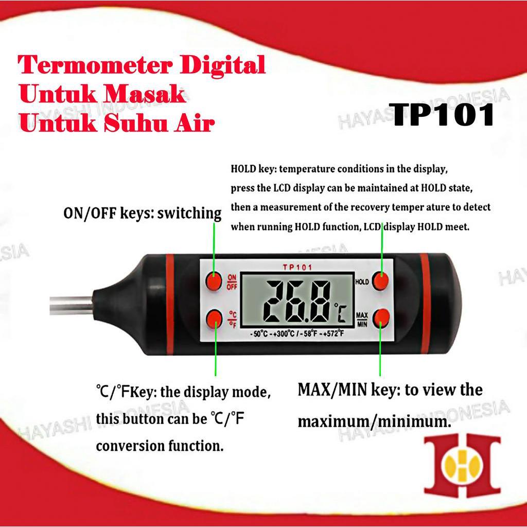 Thermometer ini digunakan untuk mengukur suhu makanan. Cocok digunakan untuk memasak, pembuatan makanan, pemanasan atau pendinginan makanan, serta baik digunakan untuk Catering. Termometer Digital ini juga dapat digunakan untuk mengukur suhu air, susu, kopi, roti, daging bbq, dll.