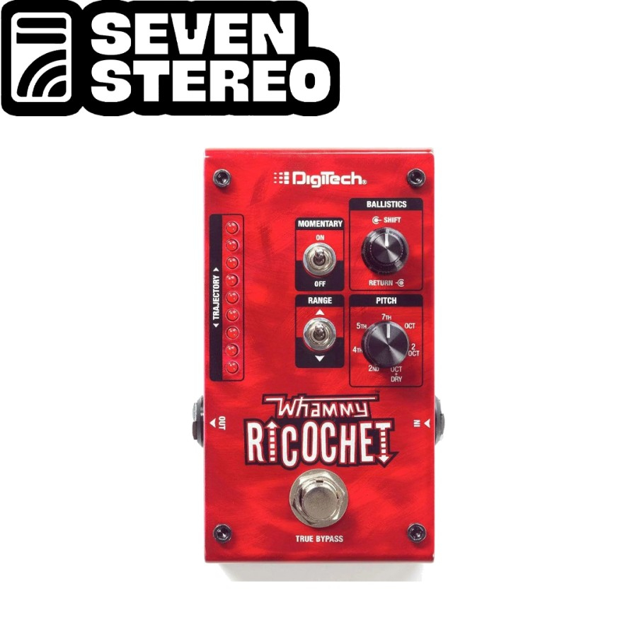 The Whammy Ricochet lets you bounce your playing up or down in pitch in controlled or crazy shifts. A momentary switch and customizable independent rise and fall time ballistics, allow you to get the Whammy action you know and love without the use of a treadle. Just hold your foot on the footswitch and let the Ricochet do the rest. Seven pitch selections – 2nd, 4th, 5th, 7th, Octave, Double Octave, and Octave+Dry, as well as a toggle to select up or down for the selected pitch.