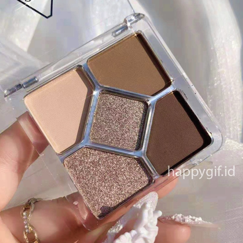EYESHADOW dengan 5 warna CANTIK ! Sangat PIGMENTED, warna cerah dan berkilau! Dalam 1 palet sudah termasuk eyeshadow MATTE dan eye shadow GLITTER! Dengan packaging yang simple dan unik, sangat mudah untuk dibawa kemanapun! Sangat cocok untuk riasan sehari-hari maupun pesta!