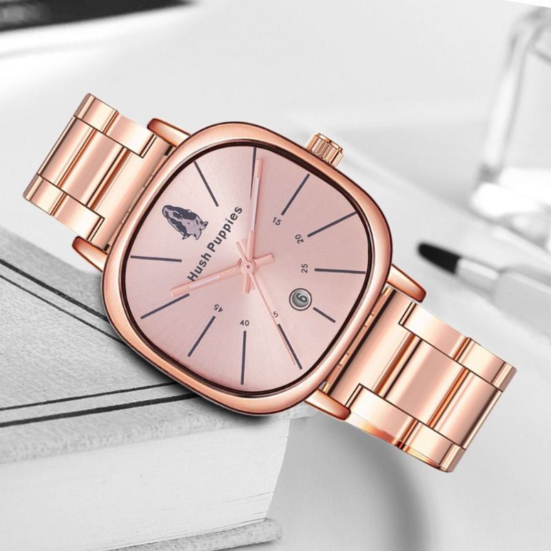 Detail Dikirim Dari Jakarta)Jam Tangan Wanita HushPuppies Strap Rantai Tanggal Aktif(Terima Cod)