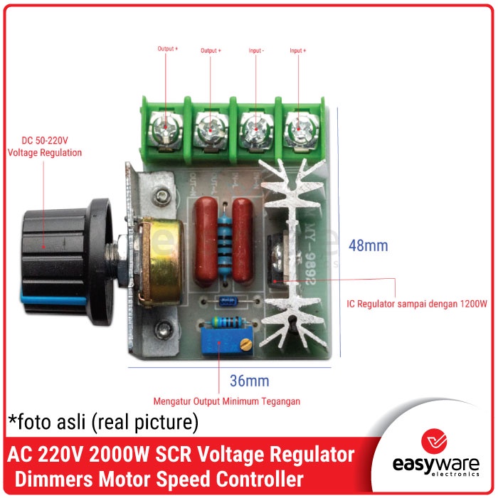 Detail Dimmer AC SCR 2000W Motor Speed Controller 220V PWM Regulator