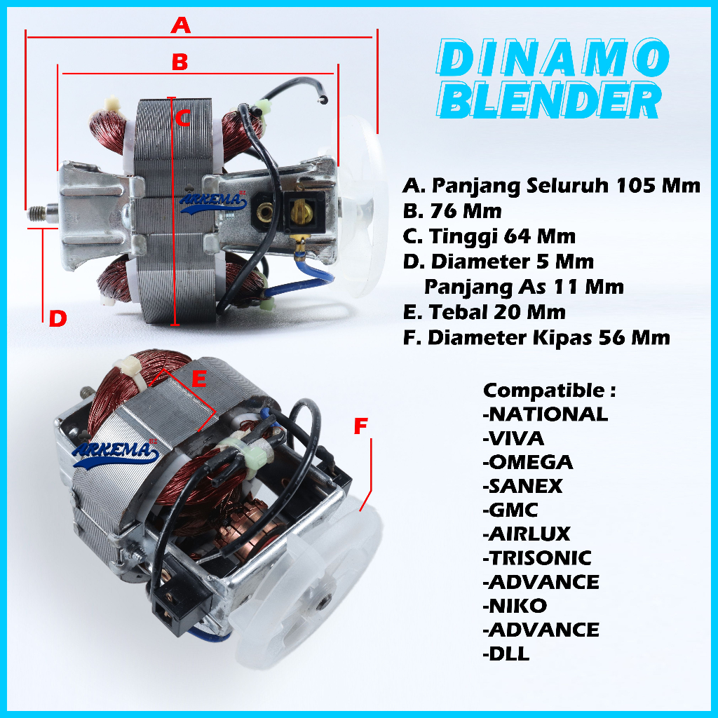 Dinamo Belnder Universal atau disebut juga Motor Dinamo Pemutar Blender Natioanl untuk Umum (bisa digunakan berbagai merk blender yang sama Spesifikasinya)