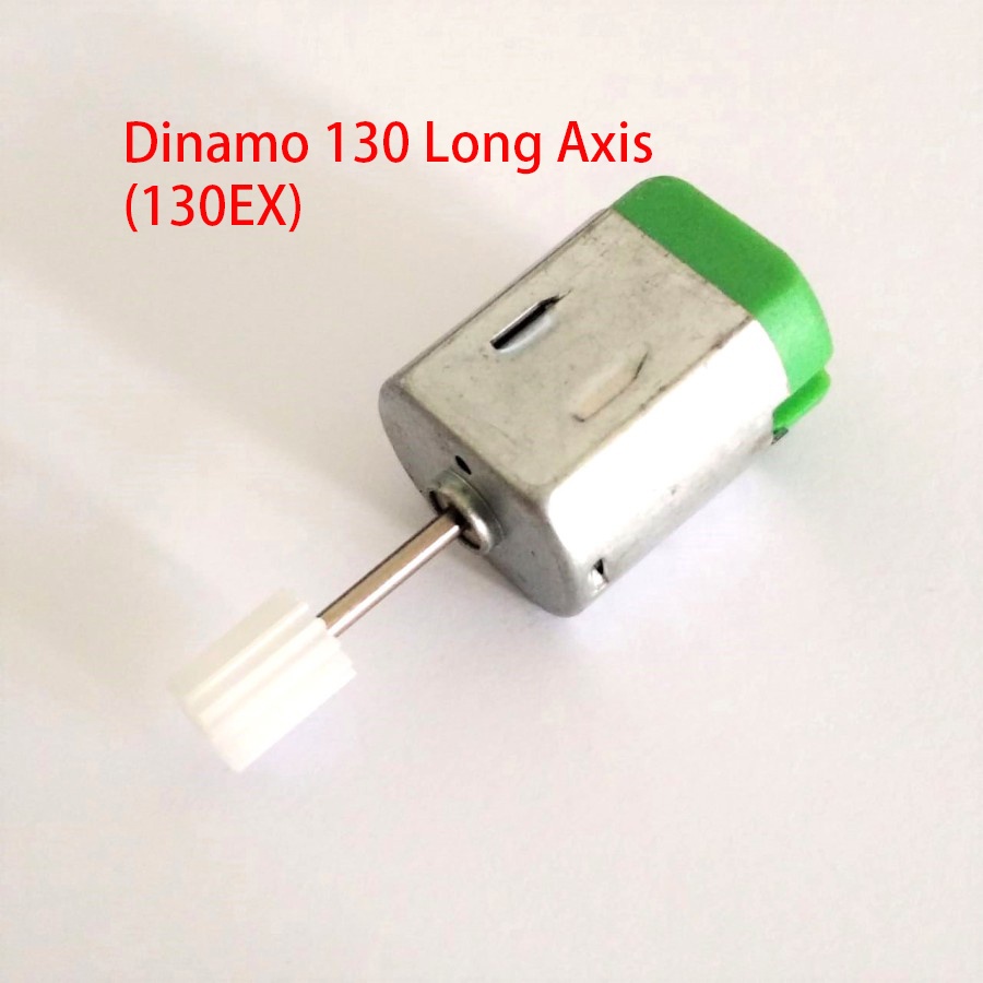 4) Motor DC 140 plus gear Range Voltage : 3V -12V Rate speed: 5500rpm Ukuran : 25x21 5)Dinamo Motor 130FX Voltage : 3-6V Speed : 10000rpm Size : 20 x 15 x 25 mm 6) Dinamo Motor 130(EX) long Axis Input : 3-6V Speed : DC 6V .....18000rpm Body Size : p=28 mm l=20mm t=15mm 7) Motor DC RF 300CA Range voltage: DC 3V -6V Optimal Voltage : 4V 5500rpm Size body : 12x13mm