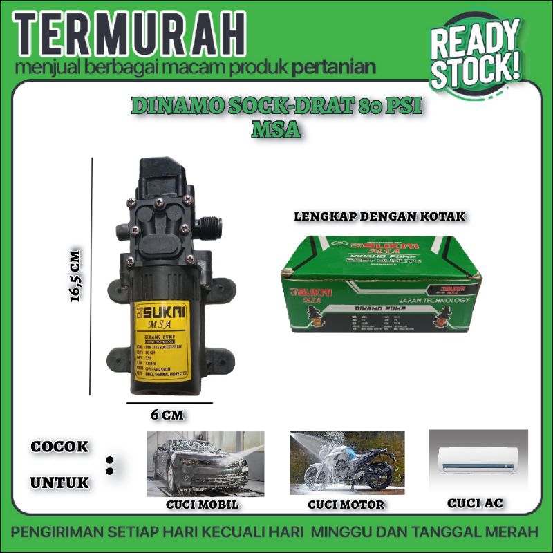 DINAMO SOCK-DRAT 80 PSI MSA HITAM Sangat cocok digunakan untuk berbagai macam sprayer elektrik, cocok untuk mencuci motor, mencuci mobil, mencuci ac, menyiram tanaman dll