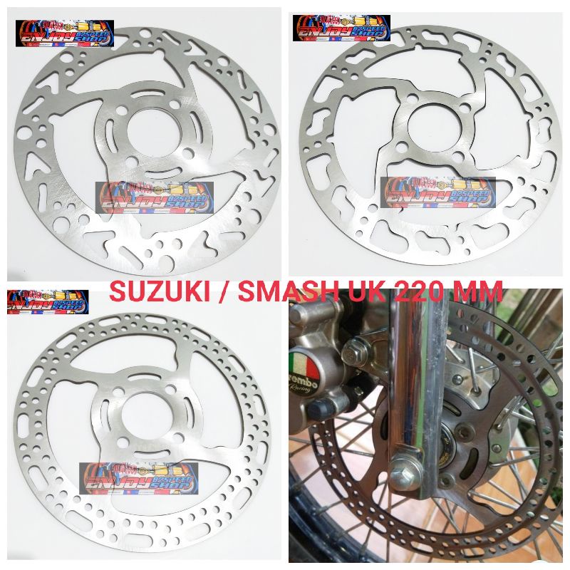 Disc piringan Cakram Depan. Mer Sunstar. Diameter Ukuran 220 mm dan tebal 3,5 mm. Untuk Suzuki smash shogun spin hayate sky drive sky wave dll. Untuk Motor satria fu harus + Breket uk 220 mm juga ya kakk. Klo sudah ada punya breket ckup beli disc nya saja kak.