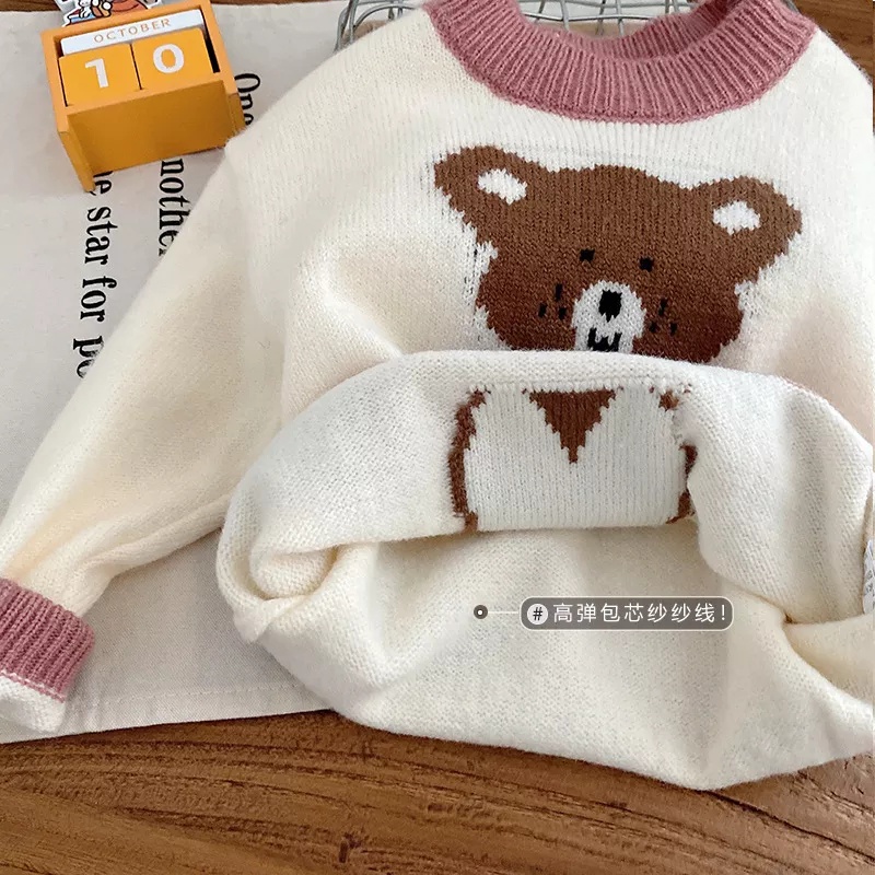 Detail TokoMilkan Sweater Rajut Anak Perempuan & Laki Laki White Honey Bear Kids | Atasan Anak Usia 1 - 6 Tahun