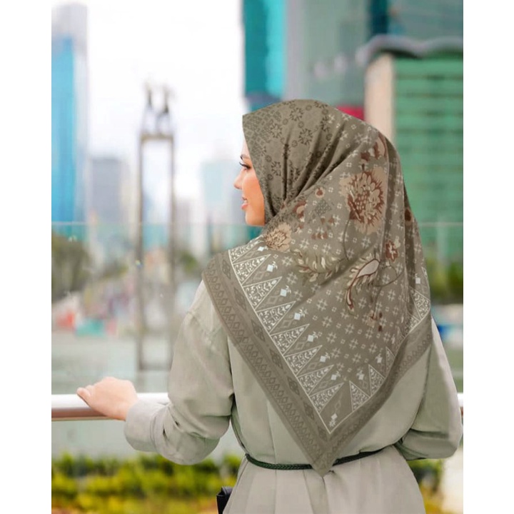 Diskon !! Hijab Segiempat Voal Motif Siera Oatmeal | Jilbab Voal | Kerudung Segiempat Voal