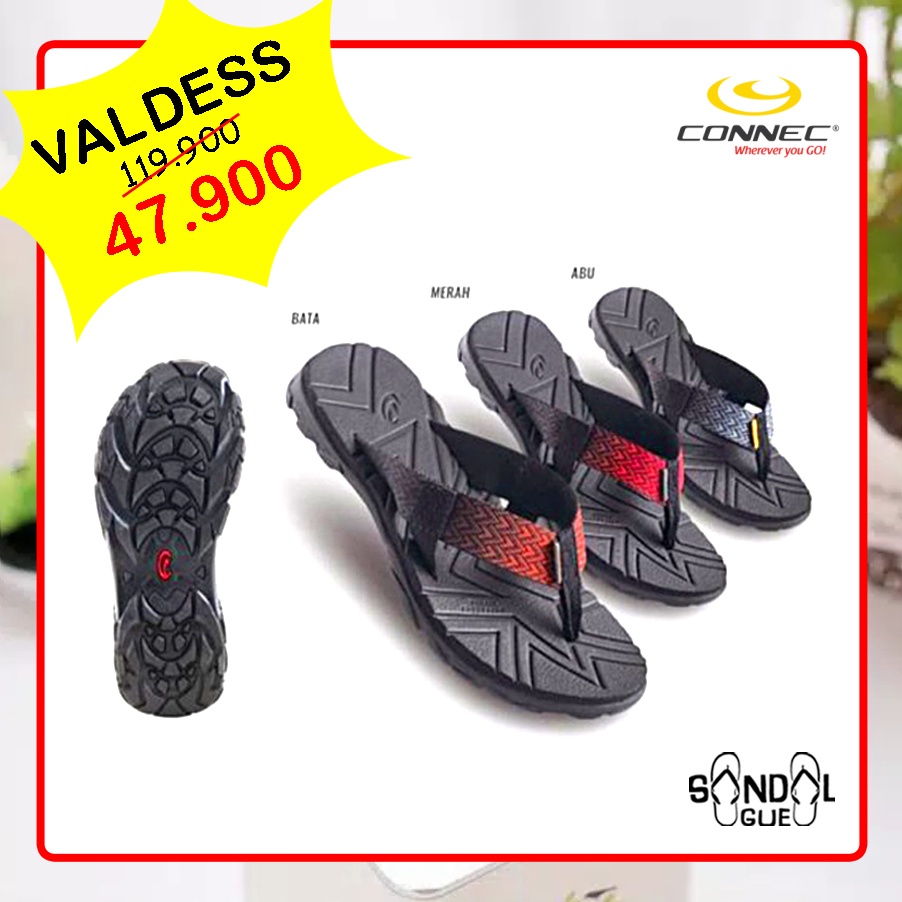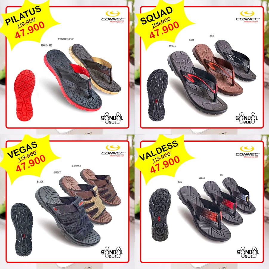 Detail DISKON SANDAL PRIA KEKINIAN CONNEC VALDESS SQUAD PILATUS VEGAS 100% NEW Sandal jepit multifungsi dapat di pakai di alam bebas dan lifestyle untuk hari-hari mu! Mempunyai fitur extreme grip yang mampu mencengkram permukaan yang kasar. Ada juga fitur hypersoft insole yang membuat nyaman dan empuk.