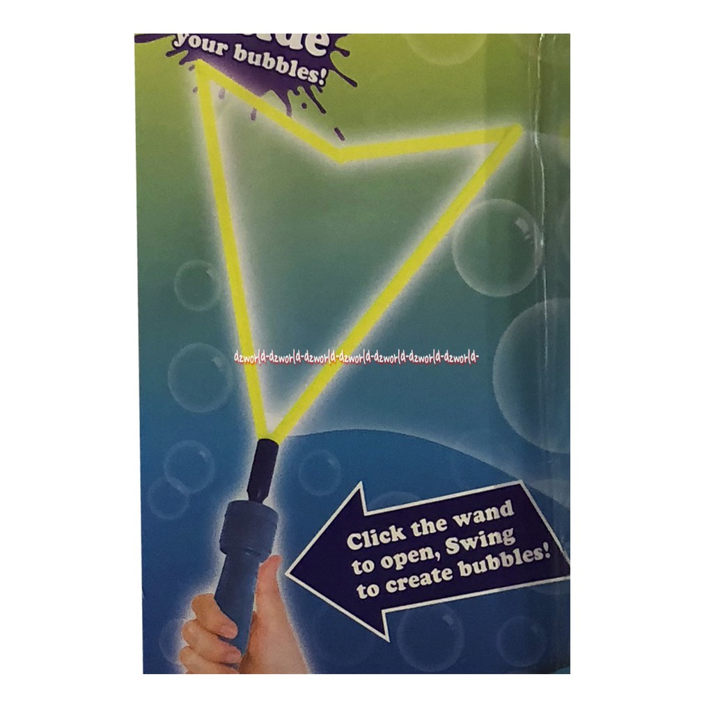 Cara Bermain : Isi tabung dengan cairan gelembung, lalu masukkan tongkat kedalam cairan ditabung, tarik keluar dan goyangkan tongkatnya untuk membuang cairan berlebih Lalu tekan tombol pada tongkat, kemudian ayunkan tongkat untuk membuat gelembung raksasa Anak-anak juga bisa menangkap gelembung besar dengan tongkat Tiup gelembung kedalam gelembung besar dan lepaskan! Dan anak-anak bisa ayunkan tongkat membentuk angka 8 untuk membuat gelembung raksasa terus menerus.