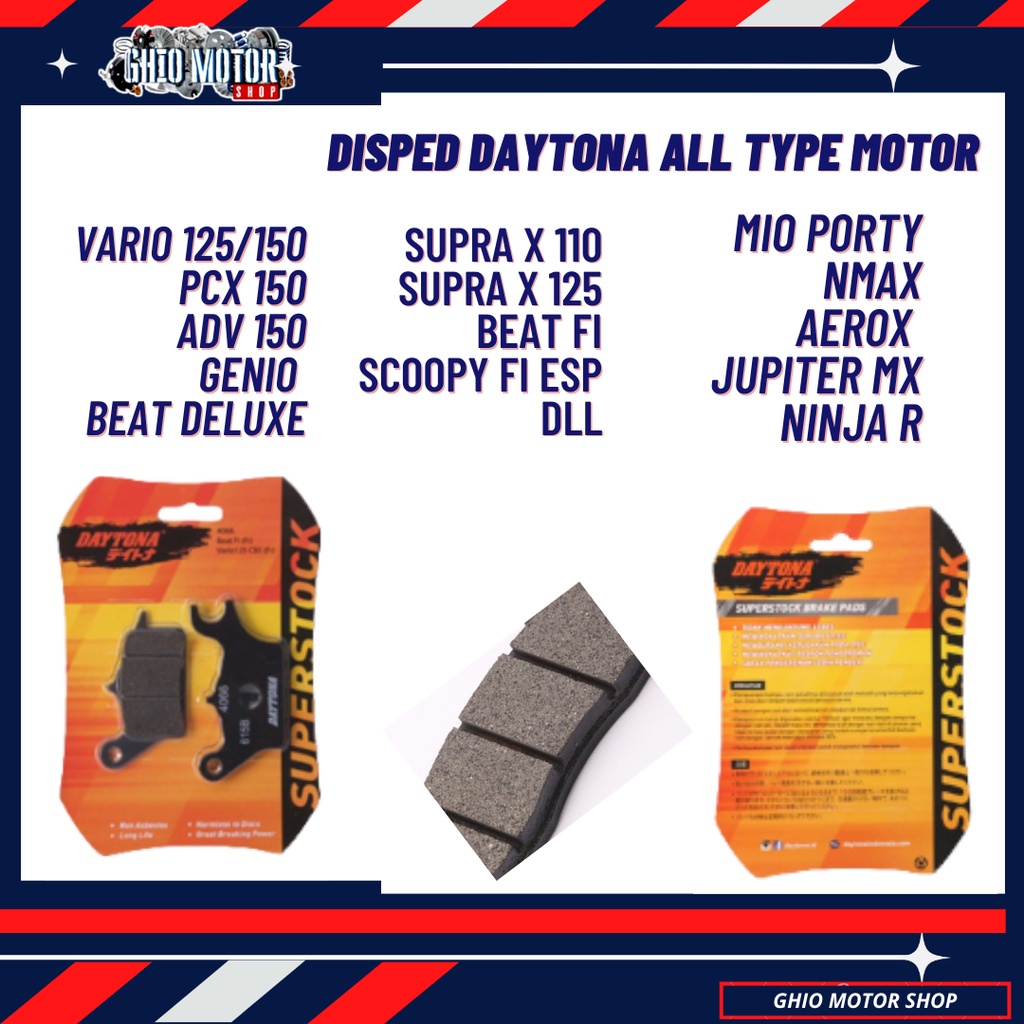Otomotif > Suku Cadang Motor > Sistem Pengereman > Disped Daytona Superstock Kampas Rem Depan Beat Fi / Vario125CBSDaytona Superstock Kampas Rem Depan Mio Soul, Vixion, Belakang Nmax Kampas Rem Nmax Depan Daytona Superstock