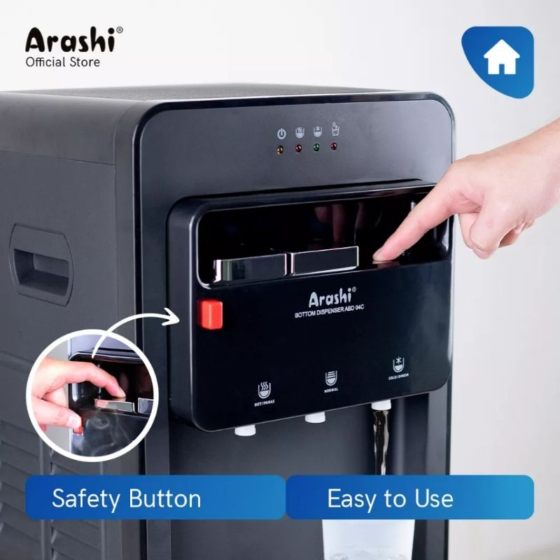 Perlengkapan Rumah > Peralatan Dapur > Dispenser & Filter Air > DISPENSER ARASHI ABD 04 C ABD04C BLACK GALON BAWAH HOT&COOL 3 KRAN {Panas, Dingin & Normal}