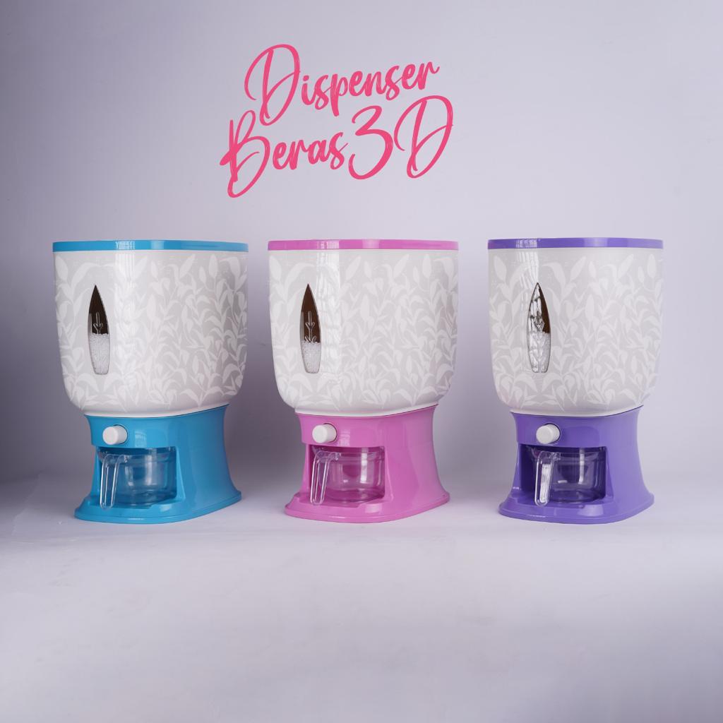 Dispenser Beras 12 Liter 3D Motif Rice Box Tempat Penyimpan beras Ongkir 1kg Termurah / tempat beras apartemen kost kontrakan hemat tempat