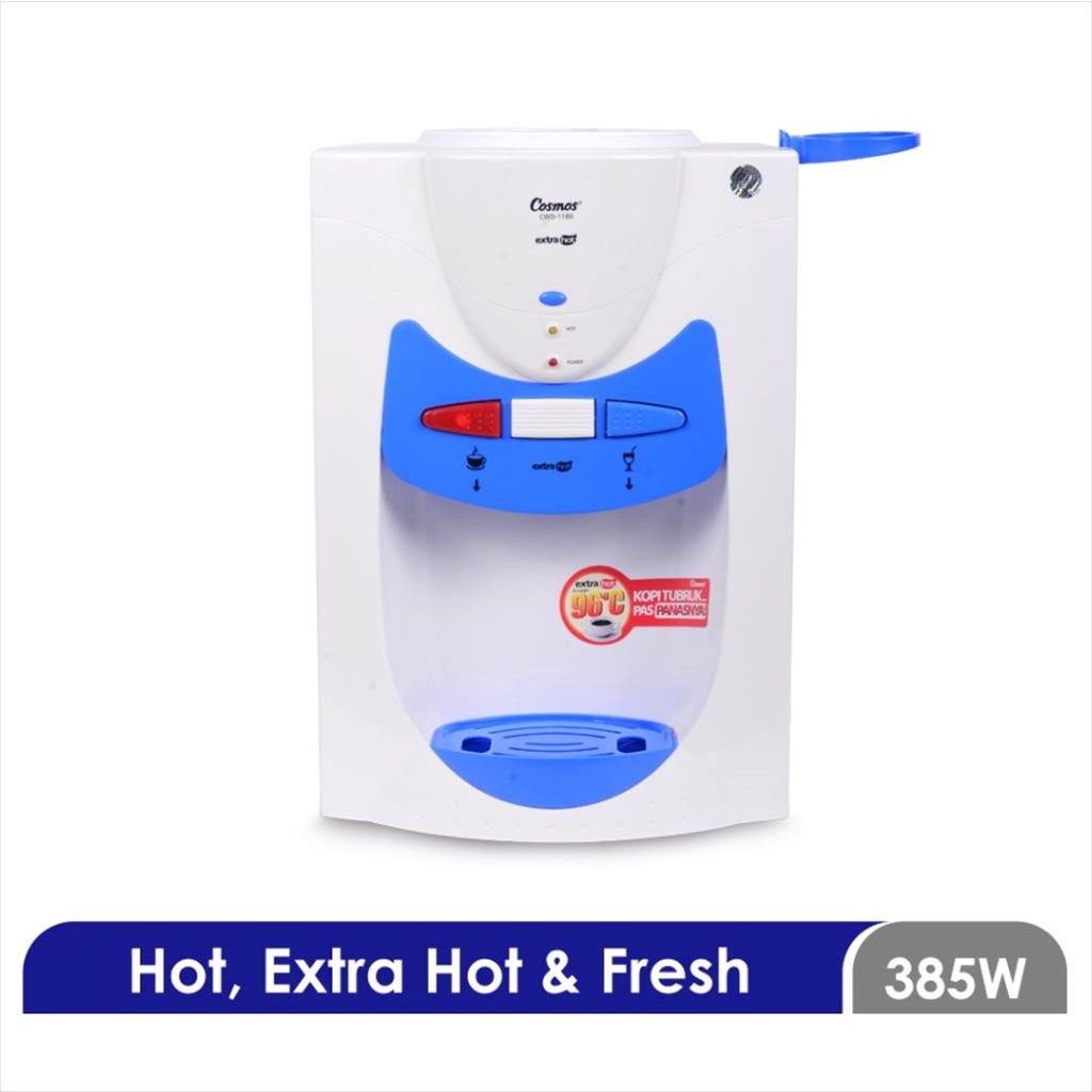 Dispenser Portable Hot, Extra Hot & Fresh Tangki Stainless Steel (Anti Karat & Higienis) Kapasitas Tangki Besar, 1 Liter: Bisa untuk Membuat Minuman hingga 5 Cangkir Sekaligus Sistem Anti Bocor Extra Hot 96 C Pas untuk Kopi Tubruk Bodi Lentur & Kokoh Daya Masukan 385 Watt