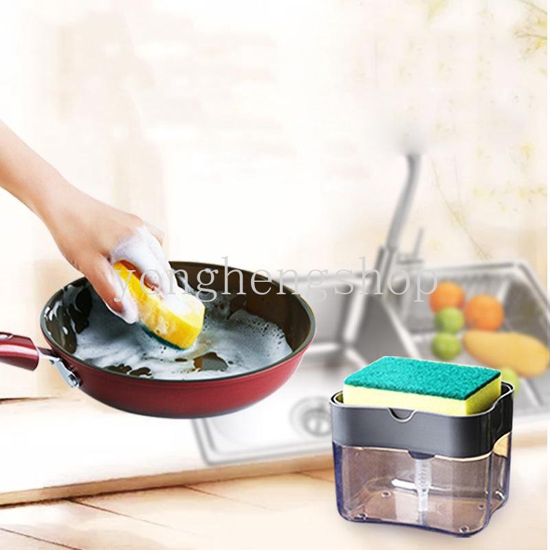 Detail Dispenser Sabun Cair Model Tekan Manual Dengan Spons Untuk Dapur