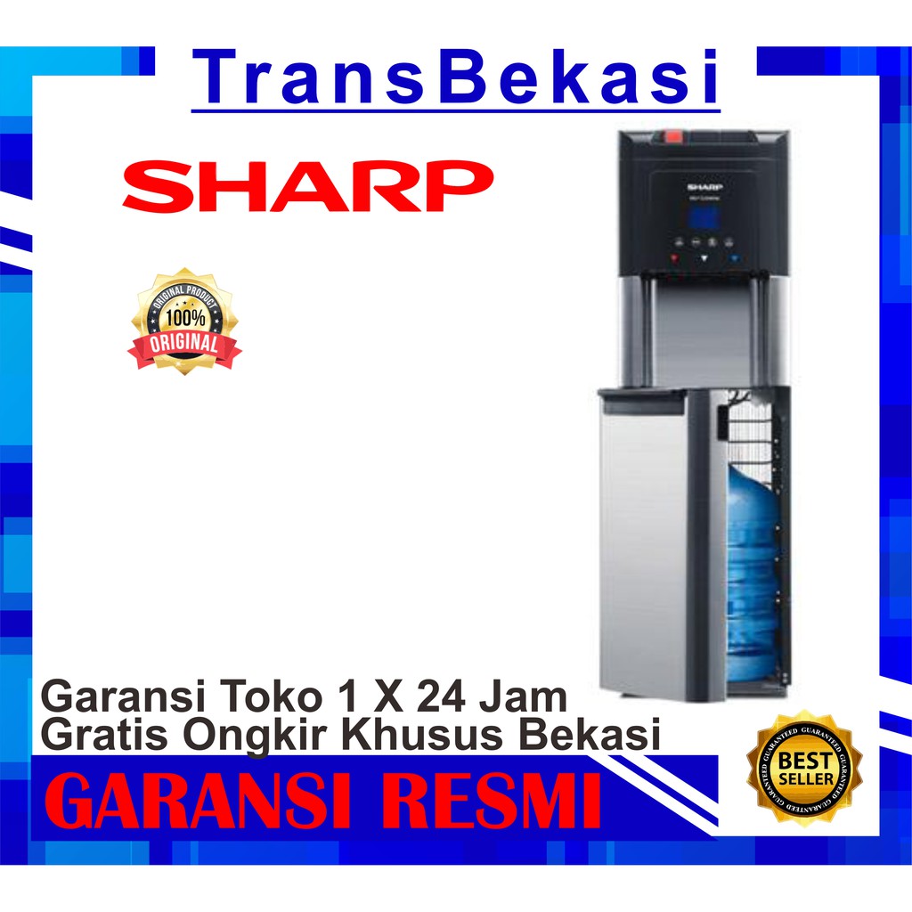 Jual dispenser sharp SWD-75EHL-SL Kondisi Baru Masih Segel 185&385watt 90derajat konstan hot water Fast flow Bottom loading 4lt water tank Extra hot 5derajat cold water Childlock Good material durable Self cleaning