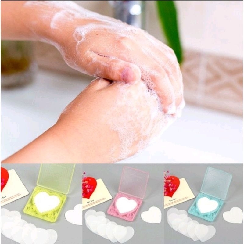 Perawatan & Kecantikan > Perawatan Tangan > Sabun Cuci Tangan > Disposable Hand Washing Tablet Travel Carry Toilet Soap Paper Sabun Kertas Sekali Pakai Bentuk Love