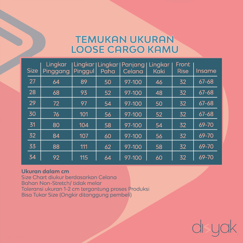 NOTE - Pastikan ukuran kamu sudah sesuai dengan Size Chart produk kami. - Garansi penukaran Max 3 hari setelah paket diterima dan Ongkir PP ditanggung pembeli - Hanya bisa Tukar Size, tidak bisa Tukar Warna & Model - Toleransi ukuran 1-2 cm tergantung proses produksi - Warna 90% dari foto tergantung dari display layar dan pencahayaan - Komplain/Tukar Size wajib melampiran Video UNBOXING (Tidak menerima video setelah paket dibuka baru direkam/paket di bungkus ulang kemudian di videokan)