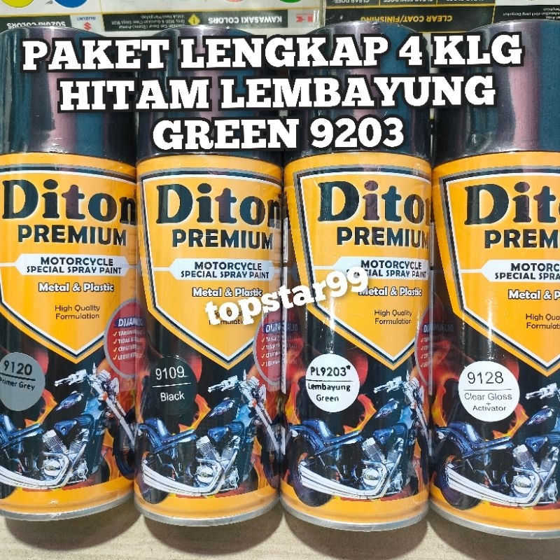 Detail Diton Premium Paket Lengkap 4 Kaleng 400cc Hitam Lembayung Green Hijau 9203 Primer Grey 9120 Black 9109 Clear Glossy 9128 Pilox Pilok Cat Semprot Spray Paint