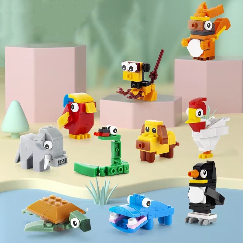 Hobi & Koleksi > Mainan & Games > Mainan Balok > Diy Blok Bangunan Hewan Kecil Pinguin Hippo Gajah Monyet Ular Puppy Tupai Kura Ayam Nuri Dan Lain-Lain 10sekat Bangunan Partikel Kecil Set Bisa Rakit Lan