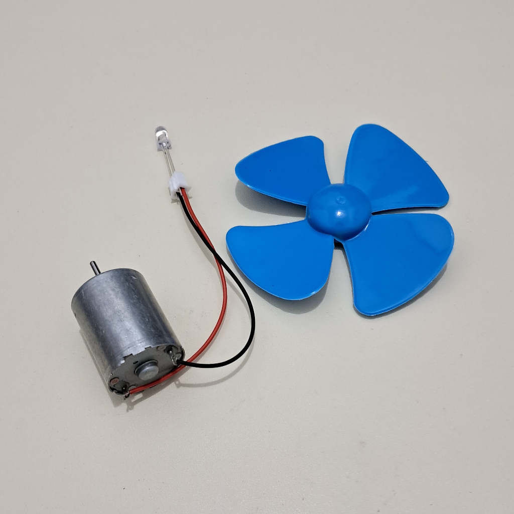 Dijual dalam kondisi belum dirakit. Adik-adik bisa belajar merakitnya sendiri sesuai video yang saya buat. Cara merakit: 1. Siapakan korek api untuk mengupas lebih lebar kabelnya (korek api tidak include di paket. Jika tidak ada korek api, sebenarnya juga sudah bisa disambung, tapi hanya pendek). Atau bisa juga pakai pisau/pemes. 2. Kupas kedua ujung kabel merah dan hitam. 3. Masukkan lampu LED 5mm kedalam socket kabel. Kaki LED yang panjang masukkan ke lubang socket yang kabelnya warna merah. 4. Masukkan ujung kabel warna merah kedalam lubang dinamo yang bertanda merah. Masukkan ujung kabel warna hitam ke dalam lubang dinamo yang tanpa ada tanda warna. Kencang dan rapatkan sambungannya dengan dinamo. 5. Putar as dinamo berlawanan arah jarum jam. Jika menyala berarti benar pemasangannya. 6. Masukkan baling-baling ke dinamo.