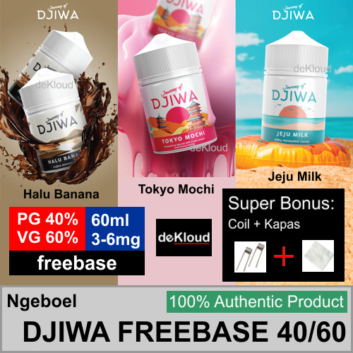 Video perkenalan produk DJIWA FREEBASE 60ml | 3-6mg | e-Liquid AIO coffee banana strawberry. Sumber: Shopee.