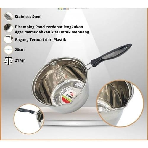 Panci Susu / Panci Serbaguna - Bisa digunakan untuk memasak apa saja (multifungsi) - Bahan Stainless Steel mudah dibersihkan - Tidak mudah tergorer - Pegangan panci yang kuat dan anti panas