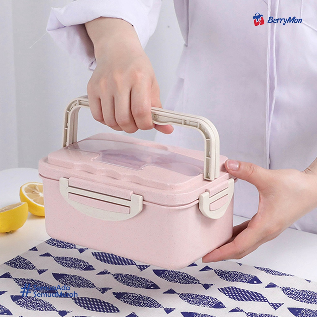 LUNCH BOX SET Kotak Bekal Makan Jerami Gandum Anti Tumpah Free Sendok Garpu