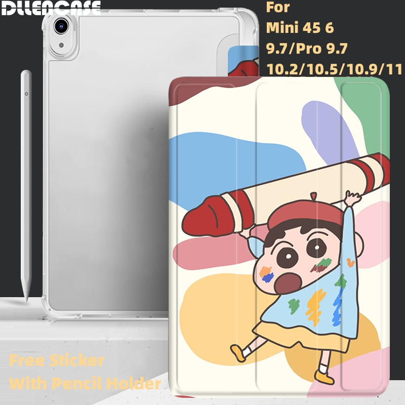 Dllencase For Crayon Shin chan iPad Case Dengan Tempat Pensil Gen10 (Gen10 2022) 2021 Pro 11 2019 2020 10.2 7/8th Gen 2018 9.7 5 /6th Mini 4 5 6 Air 4 5 10.5 10.9 Cover A378