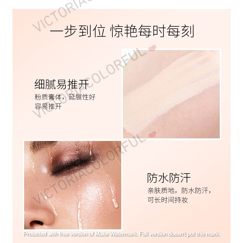 Keunggulan : Tekstur yang lembut mudah untuk diapikasikan, dapat menutupi pori-pori wajah, noda hitam dan bekas jerawat. Menghasilkan make up yang kelihatan alami dan tahan lama. Membuat riasan Anda terlihat sempurna. Tahan air dan tahan keringat. Cocok untuk makeup waterproof. Ada 14 pilihan warna yang dapat disesuaikan dengan warna kulit Anda.
