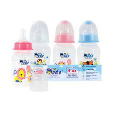 Botol Susu PP EKO terbuat dari bahan PP (Polypropylene) yang sudah BPA Free Tersedia ukuran 4 OZ dengan 3 warna pilihan dan design gambar yang luc