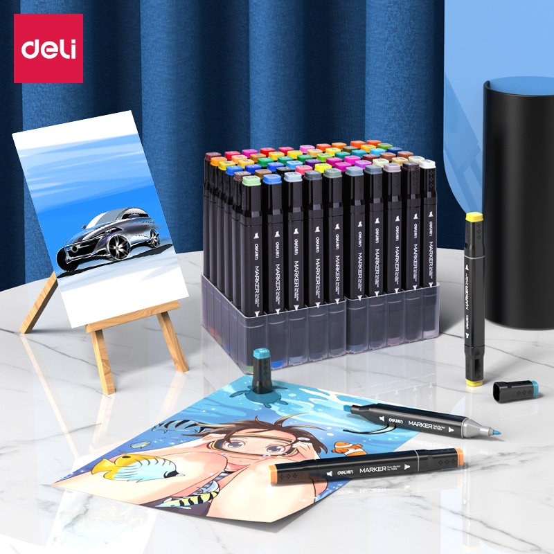 Deskripsi : Merk: Deli 2 Tip dalam 1 marker Tip Chisel 7mm dan tipe fine nib1mm Alcohol based Berbentuk squared barrel yang nyaman saat di gunakan Dan hasil pencampuran warna yang baik Include color chart Produk mengandung Alcohol Base yang membuat hasil warna lebih solid