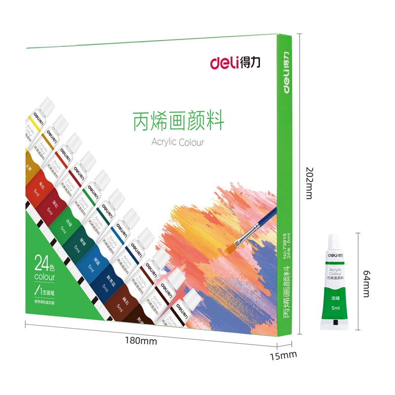 Deskripsi : Merk: Deli Isi cat 5ml per warna Warna terang dan halus saat digunakan Cat tebal dan kualitas baik Dapat digunakan di kain, tanah liat, baju, dll