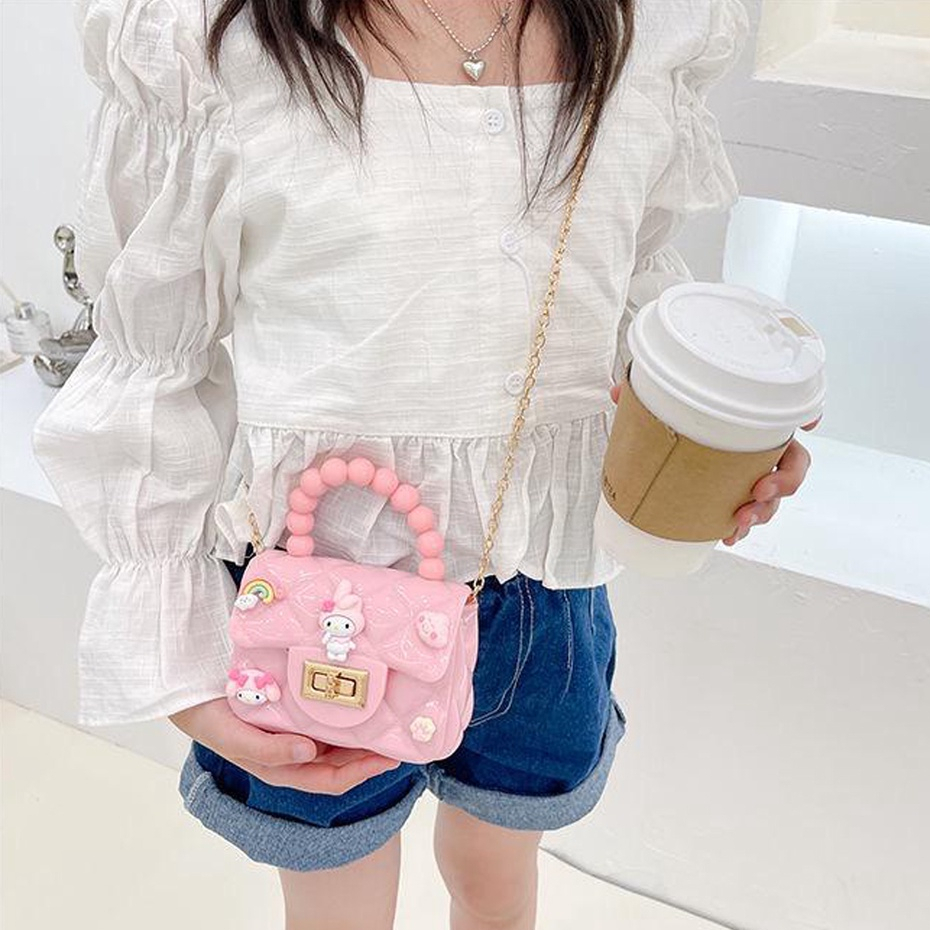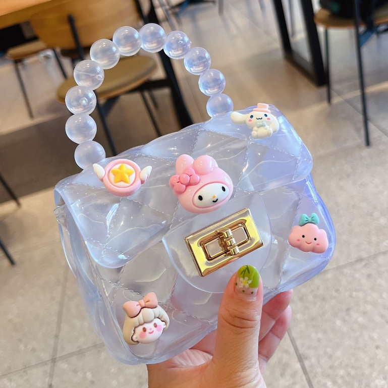 Tas Wanita > Tas Selempang & Bahu Wanita > DOMMO - D5640 Tas Selempang Jelly Karakter T5640 / Slingbag Jelly Mutiara Gaya Korea / Tas Jelly Glossy Mini