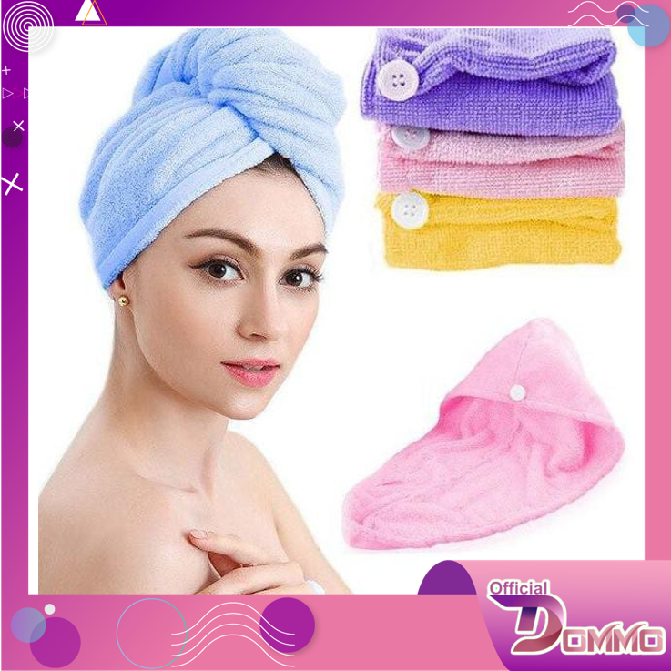Detail DOMMO - D6096 Handuk Kepala Keramas H858 / Handuk Pengering Rambut Berkancing / Handuk Kepala Keramas Microfiber / Handuk Keramas Cepat
