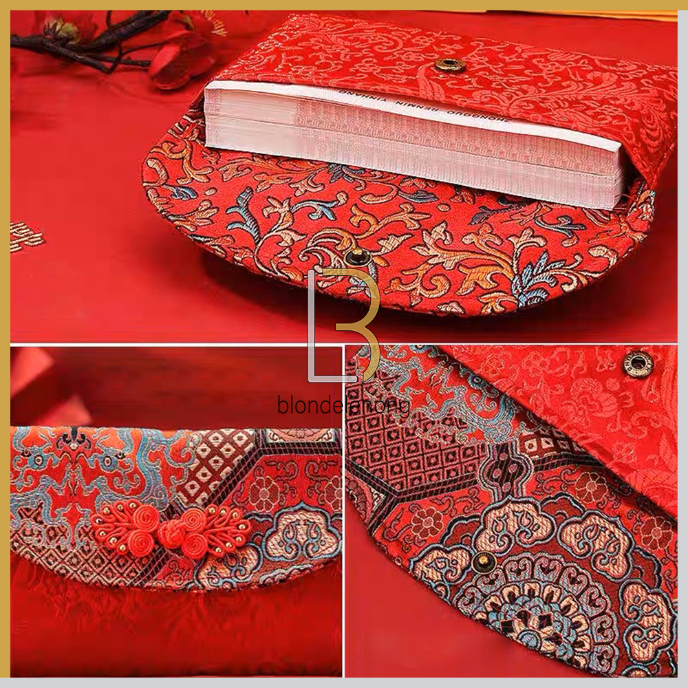 Dompet Amplop Angpao Angpau Ampau Ampao Hongbao Hongbau Kain Bludru Bukan Kertas Motif Netral Hadiah Kado Imlek Sincia Ketuk Pintu Uang Susu Hantaran Lamaran Sangjit Wedding Nikah Shuangxi Merah Emas Gold Ukuran Besar Jumbo Panjang Pendek 1 Pack Pak Murah