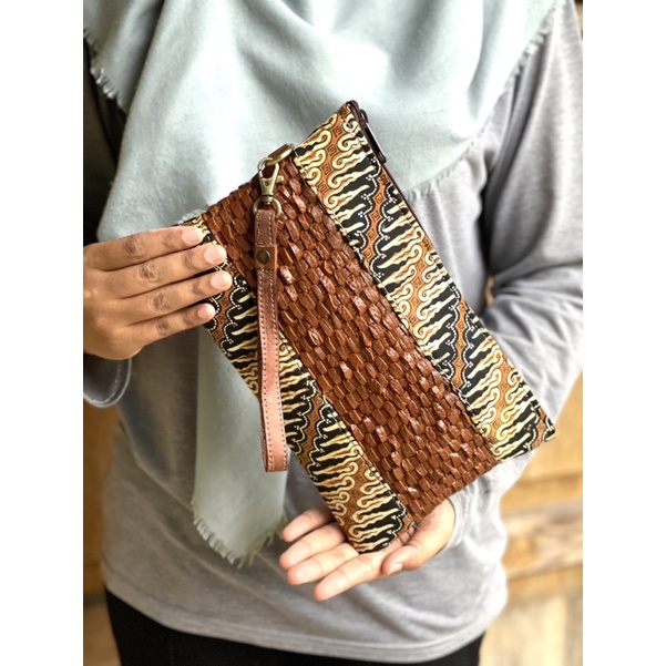 Detail Dompet batik kombinasi kulit anyam (motif batik di kirim random)