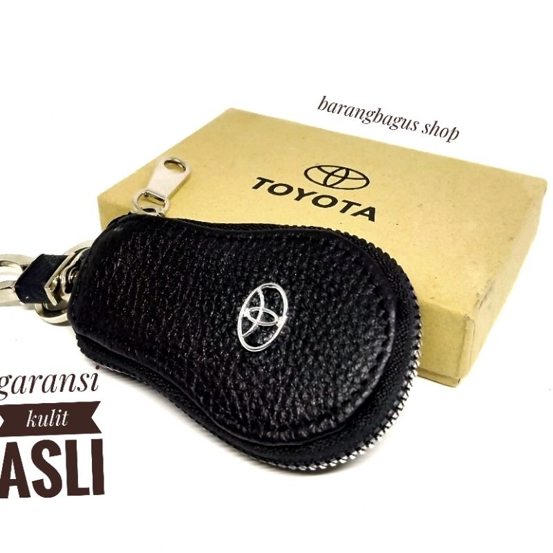 Detail Dompet Hardcase Tempat Remote Mobil bulat oval Kulit Gantungan kunci TOYOTA