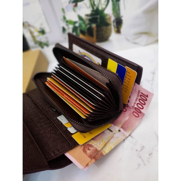 Dompet Kartu plus Uang Bahan Pu leather super Slot Card Banyak Free box Harga terjangkau Ada res sleting dalam Uk 14 x 9 Bayak pilihan variasi