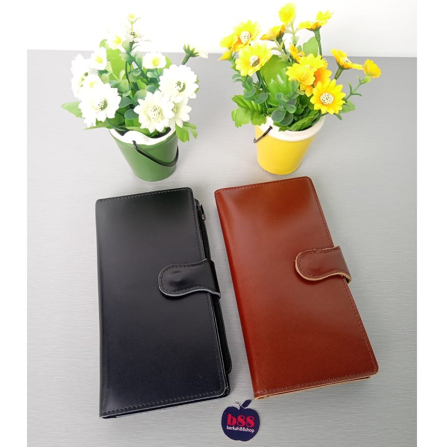 Dompet Panjang Kancing Polos Tanpa Logo Merk 100% Realpick dan 100% KULIT ASLI
