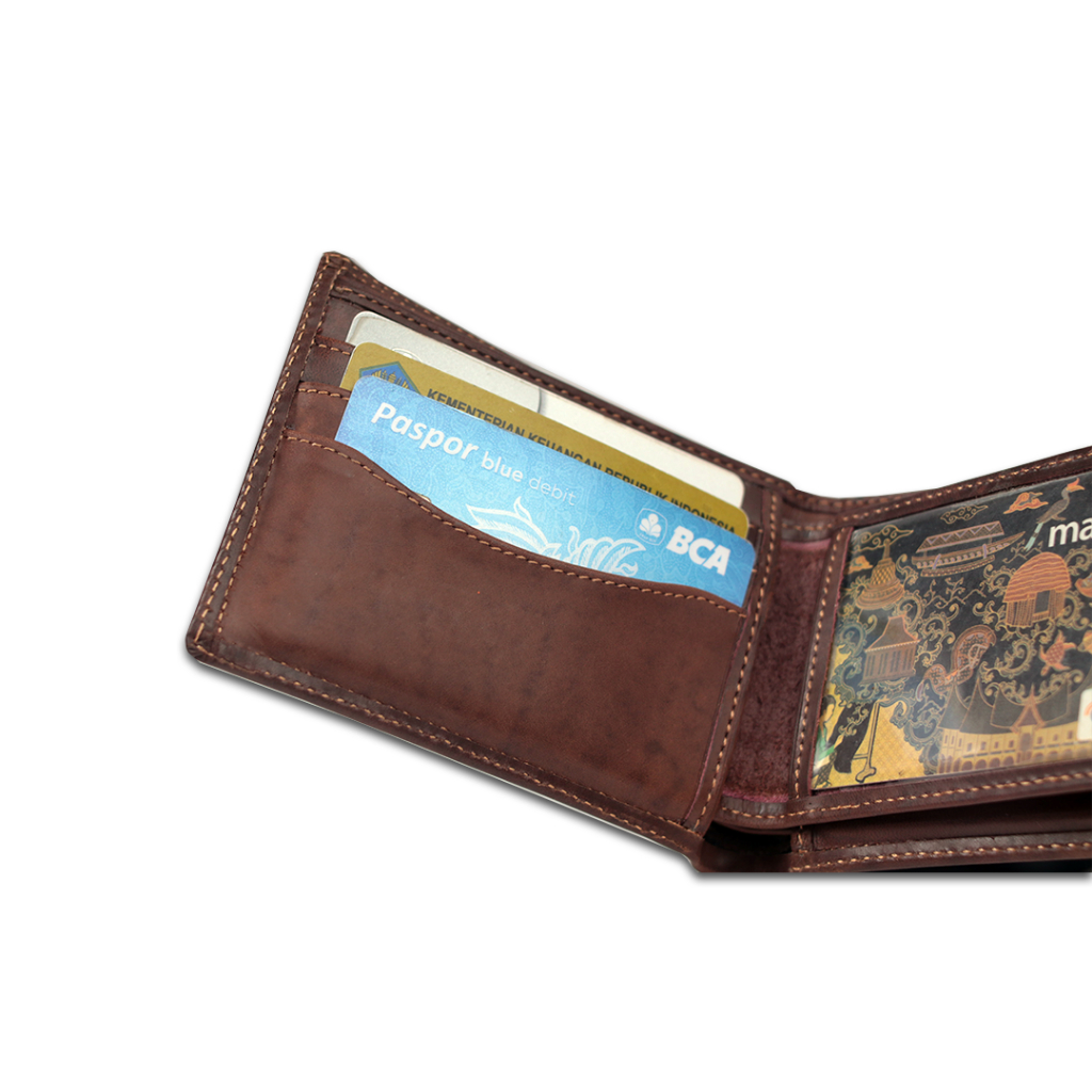 Spesifikasi: 1. Dibuat menggunakan Coated Crazy Horse Leather, yang mana sudah diketahui khalayak tentang tekstur dan kualitas kelembutan kulit COATED CH ini. Coated Crazy Horse terkenal dengan warna yang doff dan tidak glossy. 2. Bagian dalam dompet ini FULL KULIT sehingga menyajikan kesan klasik dan menunjukan keaslian kulit dalam dompet ini. Bagian dalam tanpa lapisan apapun (FULL KULIT) menjanjikan durability pada dompet ini, tidak seperti lapisan furing atau lapisan sejenis lainnya yang akan sobek atau kusut apabila digunakan dalam jangka waktu yang cukup lama. 3. . 2 slot uang, 6 slot kartu kanan+kiri, 2 slot foto dan 2 hidden slot menawarkan flesibilitas Sanga dalam menemani kegiatan sehari hari. Slot foto yang bisa disesuaikan memudahkan kalian untuk memilih memasangnya atau tidak. 4. Embossed logo Bull
