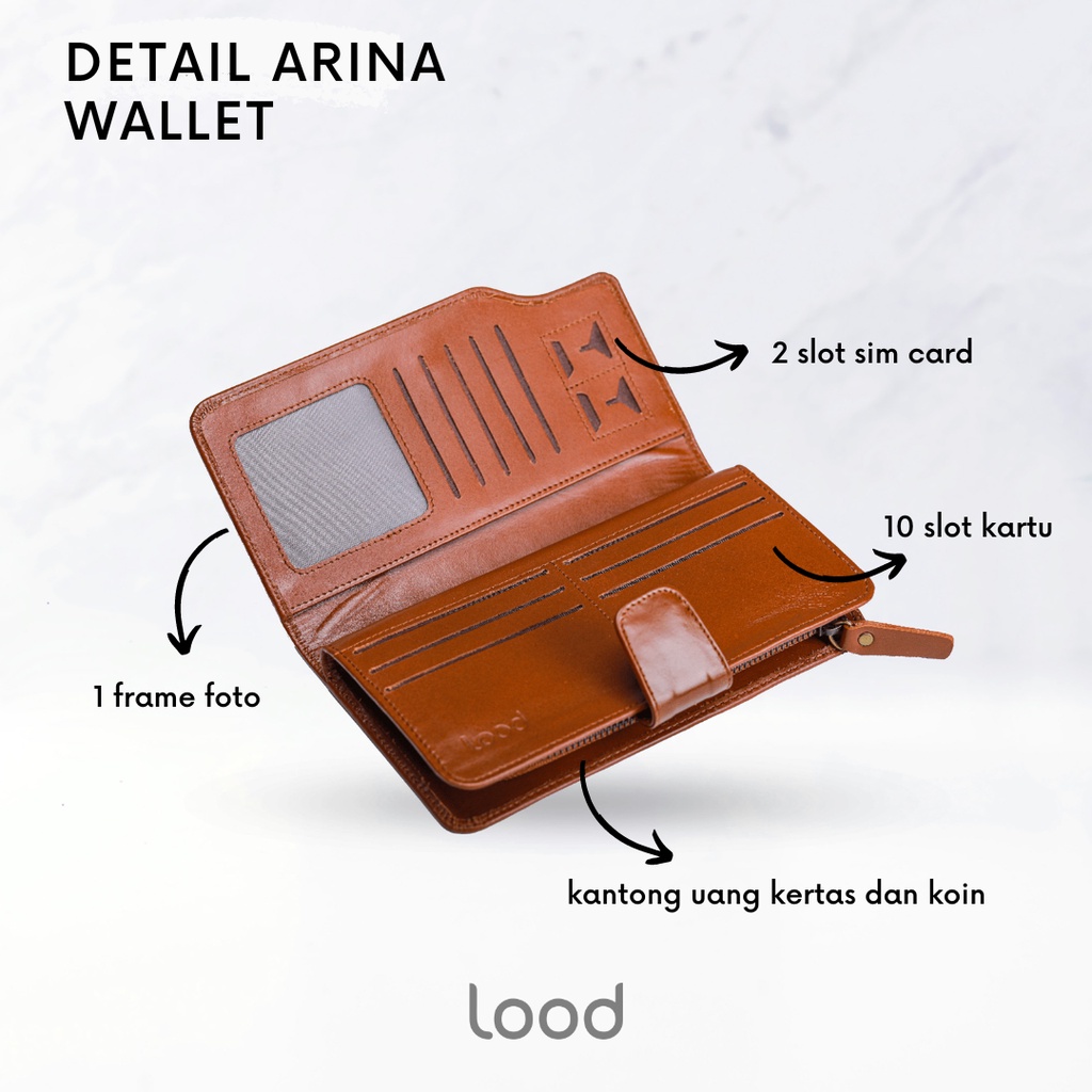 Detail DOMPET KULIT PANJANG WANITA ASLI ORIGINAL 100% ARINA LONG WALLET - GRATIS UKIR NAMA