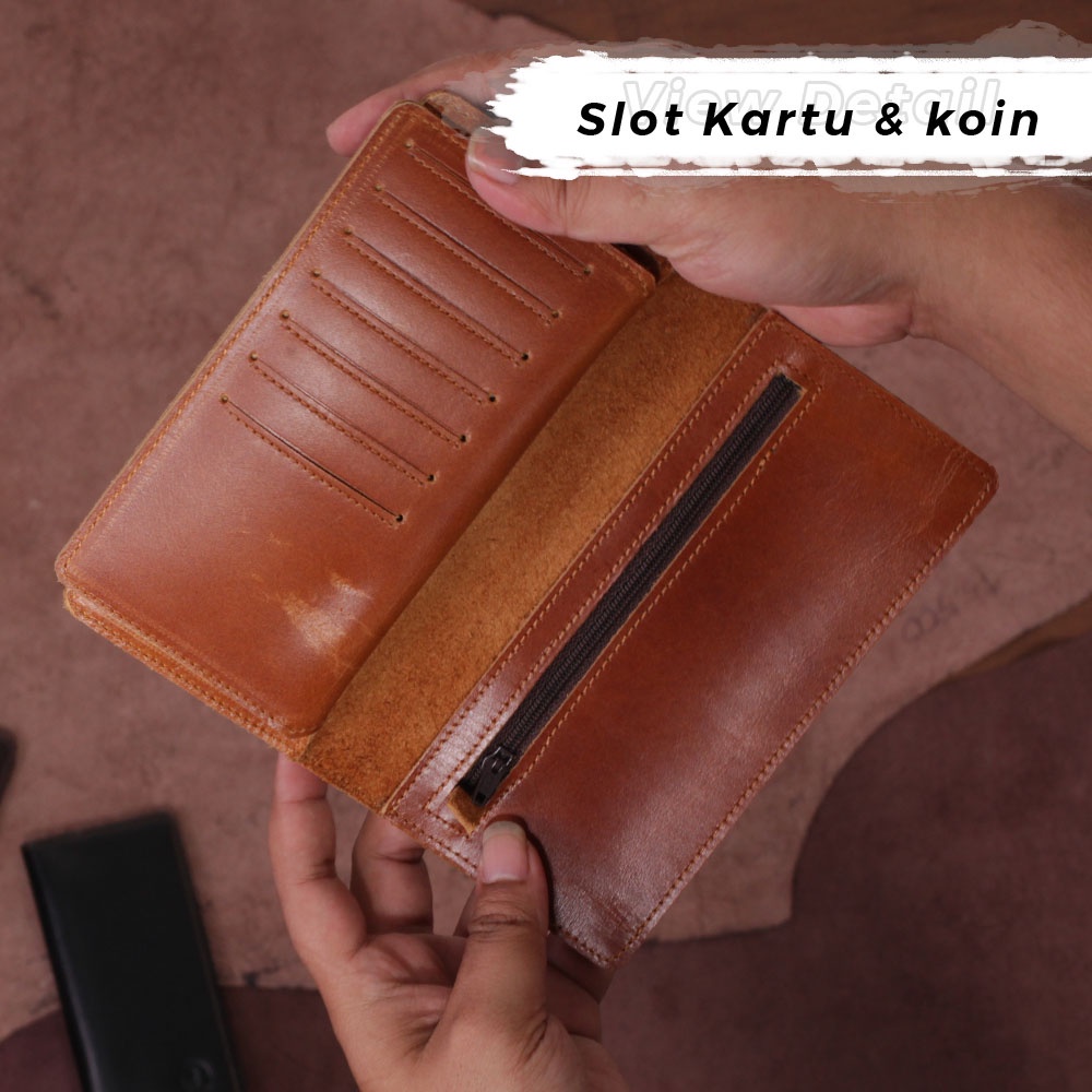 Detail Dompet Kulit Sapi Panjang Pria Wanita Dompet Kartu Pria Lipat Kulit Sapi Asli Original F012 Q