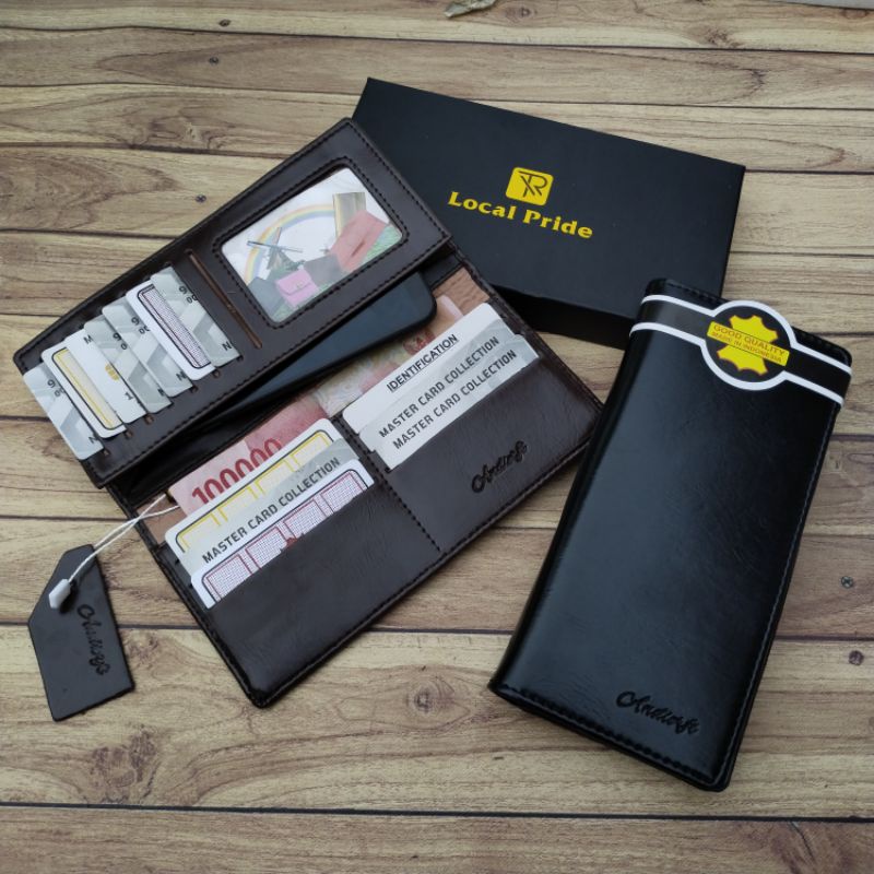 Fitur Slot : 1 Slot tempat hp ukuran 7 inci 1 Slot Penyimpanan Uang Kertas 1 pakai Resleting 13 Slot Penyimpanan Kartu 1 Slot Penyimpanan Foto/ktp