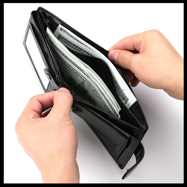 โ Dompet berbahan kulit berwarna hitam. Elegan, murah, bahan, jahitan bagus. โ Bahan kulit premium, tebal, kuat, dan pastinya awet! โ Kapasitas penyimpanan 8 kartu bisa masuk, tata dengan rapi, dan semua kartumu masuk dalam genggaman. โ Terdapat 1 resleting Kecil. โ Ada juga 2 penyimpanan uang kertas serbaguna.. โ 3 Penyimpanan foto untuk orang tersayangmu ! โ Bahan super tebal dan bagian dalam juga terbuat dari kulit, barang-barangmu dijamin aman! โ Harga super duper murah!! Barang import dengan kualitas premium! โ Ayoo buruan, tampil keren dan elegan dengan DOMPET FREELASO !