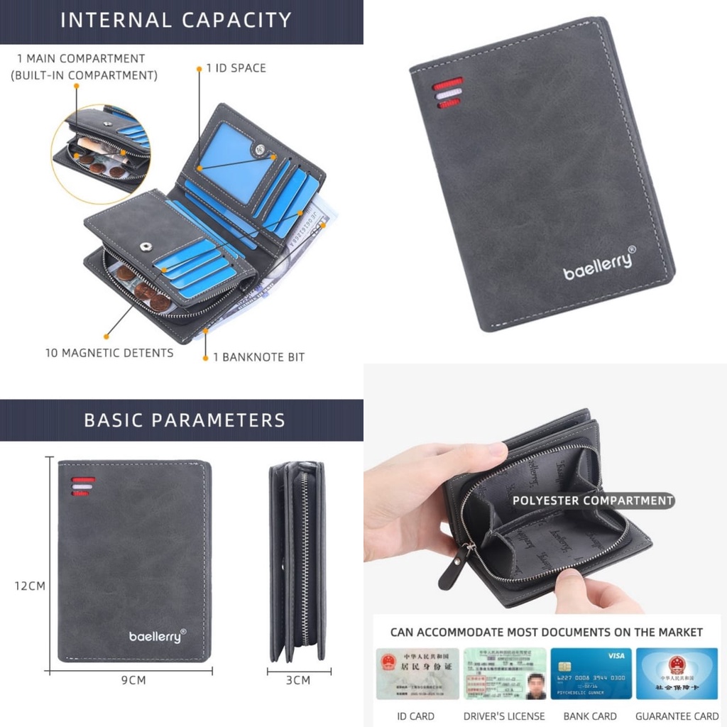 ๐ฅ MERK: BAELLERRY ORIGINAL ๐ฅ Bahan: Kulit Sintetis ๐ฅ Warna: Abu-abu ๐ฅ Ukuran: 12.5 x 3 x 9 cm