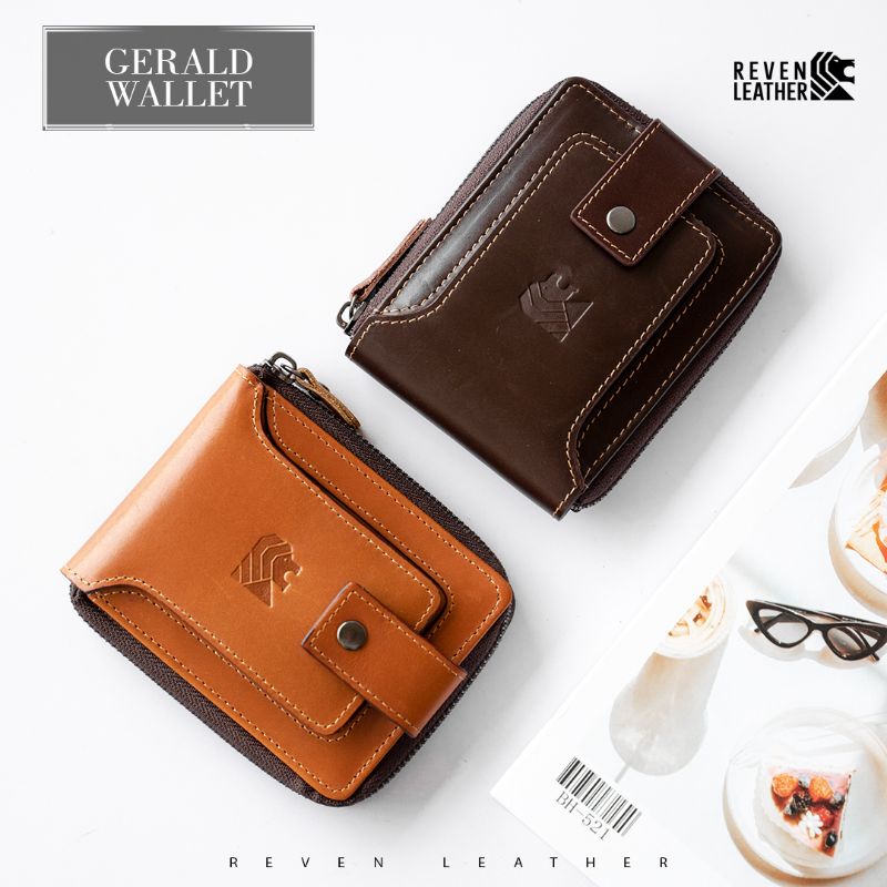 Tas Pria > Dompet > Dompet Lipat > Dompet Pendek Pria Kulit Asli Model Kancing Resleting Dompet Cowok Lipat Keren Kulit Sapi Asli Premium Gerald Wallet Original Reven Bonus Box