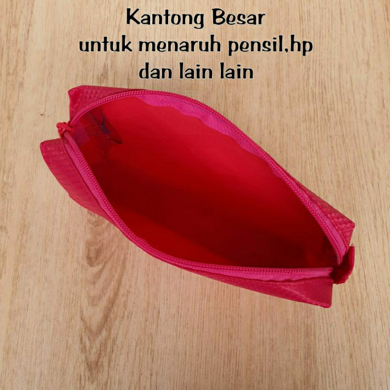 Tas Dompet untuk membawa bolpoin, penggaris, hp dan perlengkapan lainnya, dilengkapi demgan resleting penutup sehingga barang aman