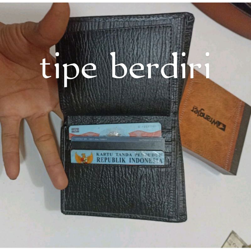 dompet peria mudel duduk dompet kulit dompet kulit motif serat kayu dompet dua freasi tpe duduk dan ber diri warna hitam warna coklat dompet terbuat dari kulit asli 100% dopet peria model dopet lipat